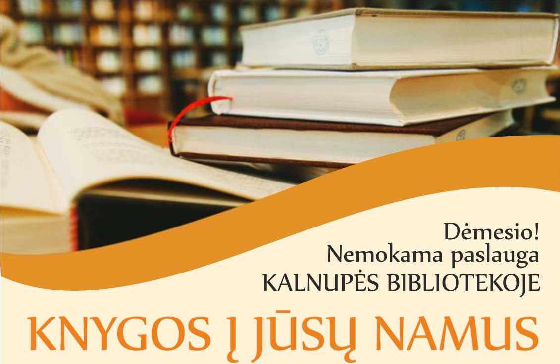 Klaipėdos miesto savivaldybės Imanuelio Kanto viešosios bibliotekos Kalnupės padalinys (Kalnupės g. 13) pristato naują paslaugą: knygų pristatymą į namus, žmonėms, kurie dėl amžiaus ar fizinės negalios neturi galimybių patys atvykti į biblioteką.