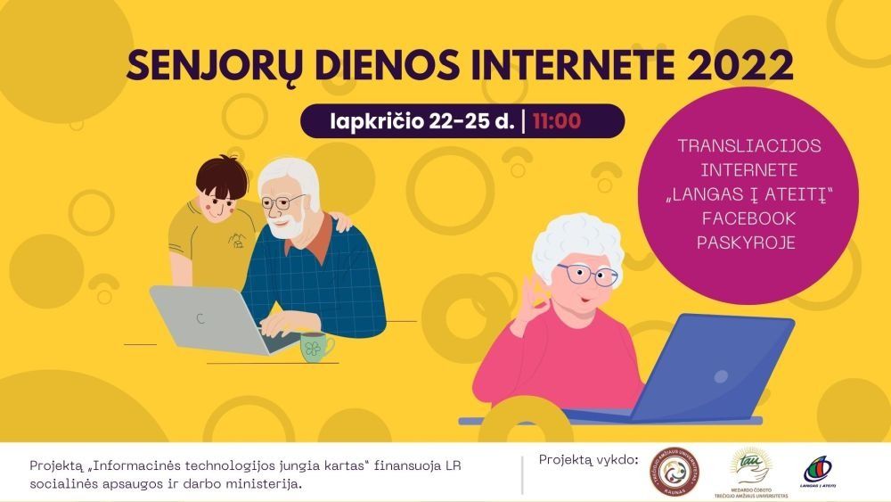 Lapkričio 22-25 dienomis, 11 valandą, kviečiame susiburti prie išmaniųjų įrenginių ir stebėti „Senjorų dienos internete 2022“ tiesiogines transliacijas.