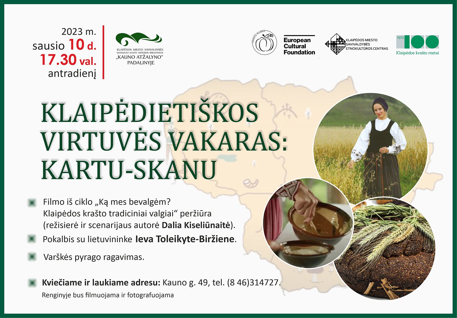 Sausio 10 d., antradienį, 17.30 val. kviečiame į Klaipėdietiškos virtuvės vakarą Klaipėdos miesto savivaldybės Imanuelio Kanto viešosios bibliotekos „Kauno atžalyno“ padalinyje (Kauno g. 49).