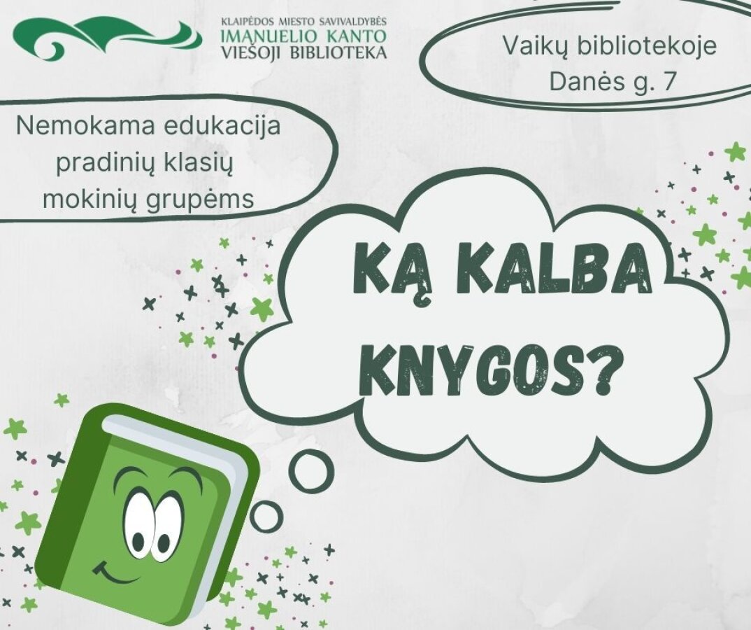 Kovo mėnesį Klaipėdos miesto savivaldybės Imanuelio Kanto viešosios bibliotekos Vaikų padalinyje (Danės g. 7) kviečiame ikimokyklinių ir pradinių klasių mokinių grupes susipažinti, įvertinti naujausias knygas, pasinerti į smagius nuotykius, dalyvaujant nemokamose edukacinėse programose:
